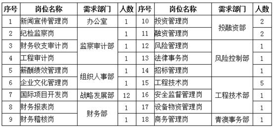 为落实国家“一带一路”战略,适应公司发展需要,经研究,决定面向社会公开招聘相关人员,现就有关事宜公告如下: