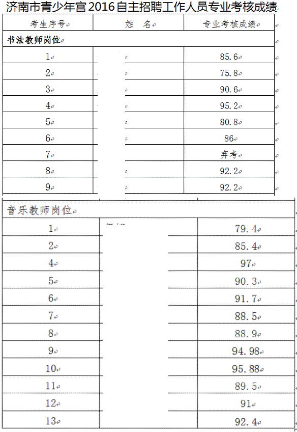原标题:关于公布2016年济南市青少年宫自主招聘工作人员专业考核成绩及进入笔试人员名单的公告
