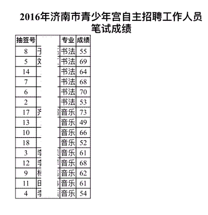原标题:关于公布2016年济南市青少年宫自主招聘工作人员笔试成绩和进入综合考察人员名单的公告
