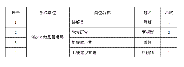 湖南:2017年01月湖南长沙刘少奇故里管理局招聘录用名单公示