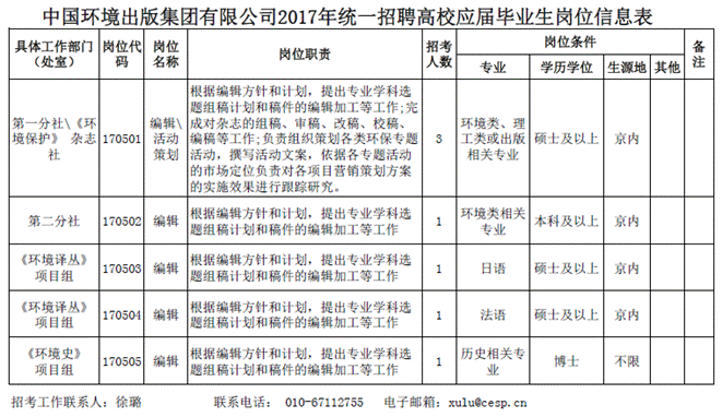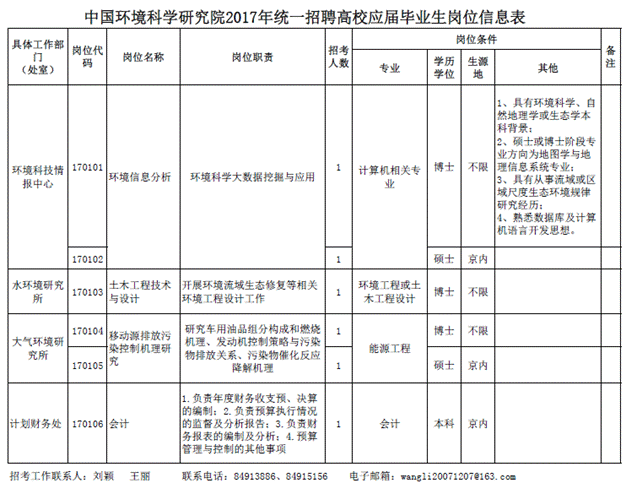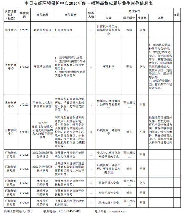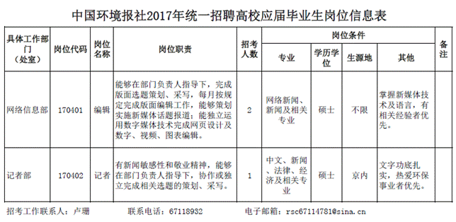 原标题:环境保护部在京直属单位2017年统一招考高校应届毕业生公告