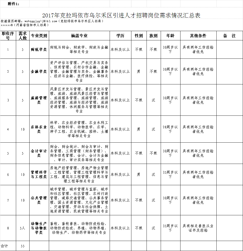 投递简历邮箱:wehqggjyglj@163.com(克拉玛依市乌尔禾区人社局)
