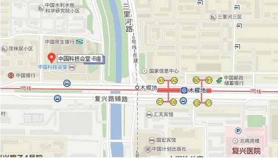 北京市海淀区复兴路3号中国科技会 堂-B座4层(木樨地桥西北角,地铁1号线木樨地地铁站A1出口西行450米),具体如下: