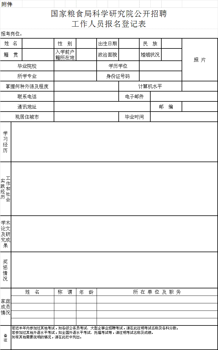 国家粮食局科学研究院公开招聘工作人员报名登记表.xls