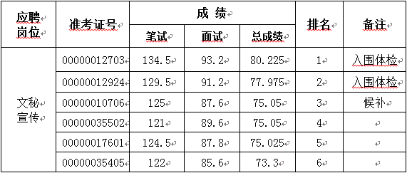 浙江:2017年07月浙江省住房和城乡建设厅公告宣传中心招聘考试成绩及体检名单公告