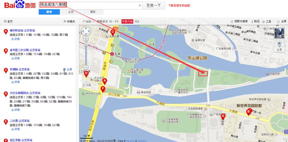 图2:面试地点周边公交站点示意图(红色箭头所指为面试地点)。图片来源:百度地图网站