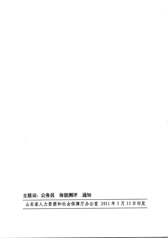 测评的项目为男、女纵跳摸高,男、女10米×4往返跑,男1000米、女800米跑。体能素质测评各个项目严格按照山东省人力资源和社会保障厅、山东省公安厅、山东省公务员局《转发人力资源和社会保障部、公安部、国家公务员局关于印发公安机关录用人民警察体能测评项目和标准(暂行)的通知》(鲁人社发﹝2011﹞27号)文件规定的标准执行。(见附件)