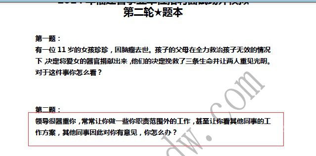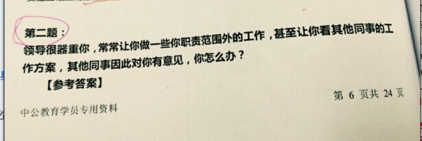 第三题:领导分配给你职责以外的工作,同事有意见。你怎么看