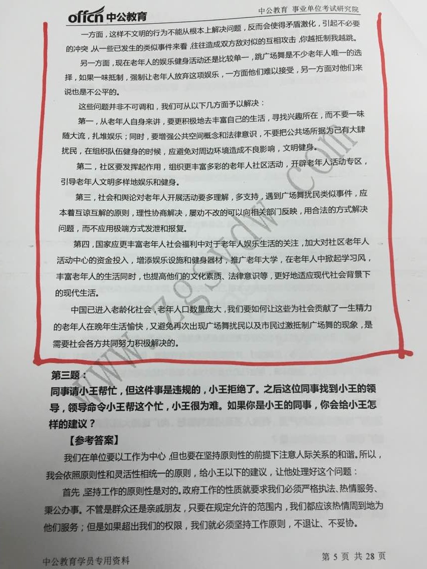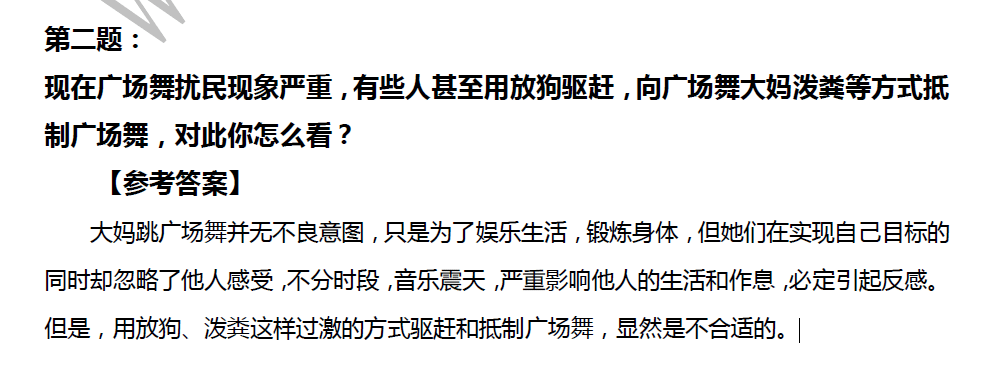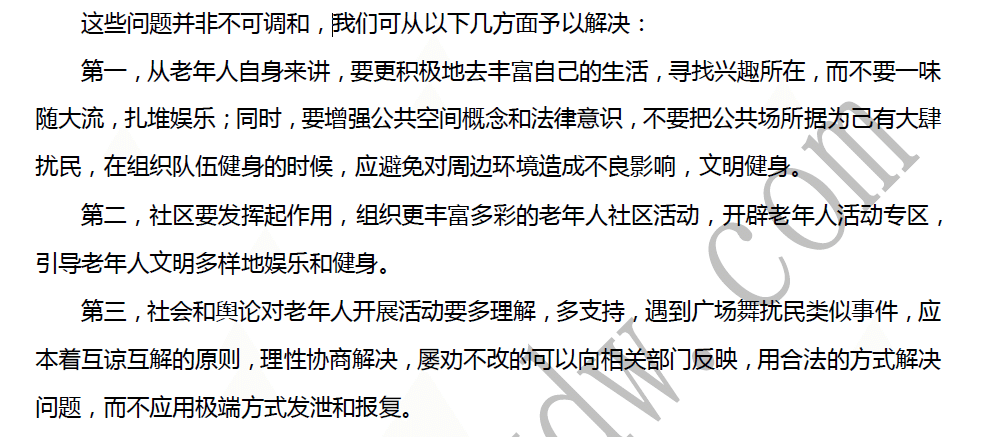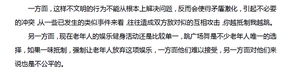 第二题:你是社区工作人员 对广场舞大妈的扰民现象进行劝说