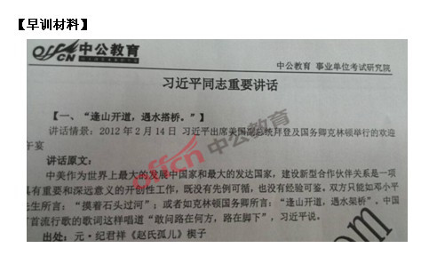 在91考试网教育重庆分校于2013年1月14日至1月18日开设的2014涪陵事业单位面试精品协议班中,第一天的早训材料即完全命中2014年涪陵事业单位招聘考试面试真题,这也用事实彰显了91考试网教育对命题规律的精准把握,以及强大的研发实力。