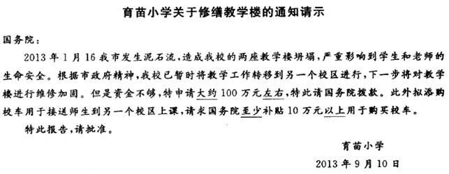 B 专家详解:该公文将请示和通知并用,属于文种杂揉。该公文标题并不存在缺少主语、缺少发文机关、事由不明的问题,故本题选择B项。