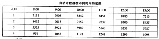 【答案】A。专家解析:由表格第二行可知,9:00到11:00通过人口2进人展览馆的有9237-9013=224人。应选A。