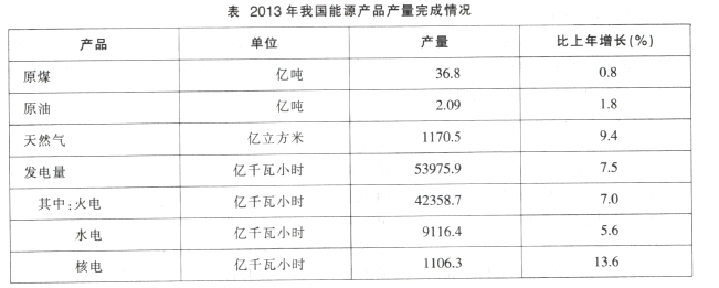 2013年我国能源消费总量37.5亿吨标准煤,比上年增长3.7%。其中,原煤消费量增长3.7%,原油消费量增长3.4%,天然气消费量增长13.0%,电力消费量增长7.5%。2013年我国能源产品产量完成情况见下表: