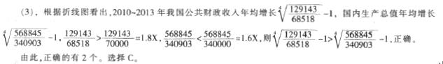 (3)2010~2013年四年我国公共财政收入年均增长速度大于国内生产总值年均增长速度 A: 0个 B: 1个 C: 2个 D: 3个 参考答案: C