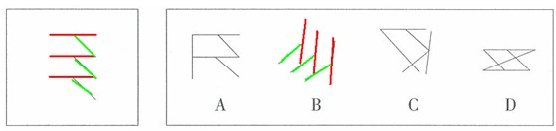 参考答案: B 本题解释:答案: B解析:由于B项可分割为如下图形,因此正确答案为B。