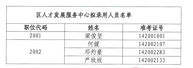 2014年03月广东佛山顺德区人才发展服务中心拟录用人员名单公示