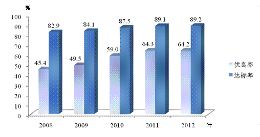 图1 2008~2012年S市中小学生体质健康综合评价比较