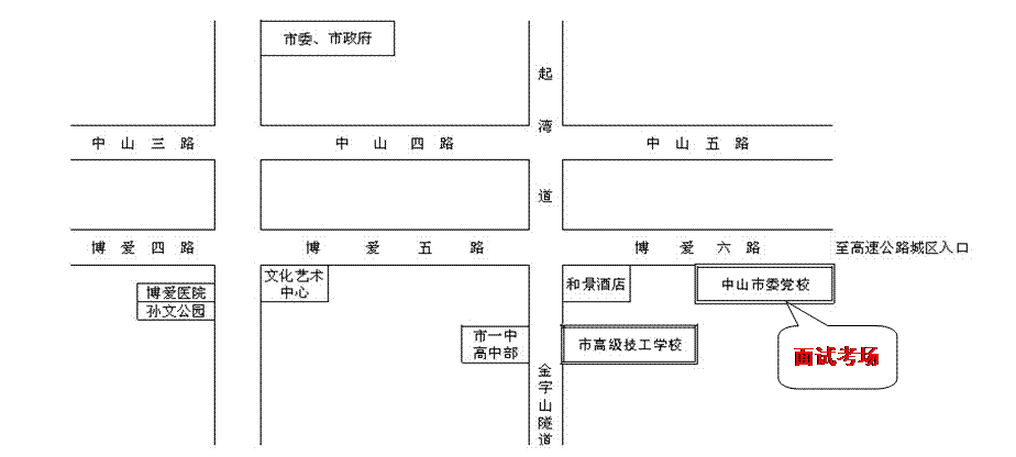 二、面试地点:中山市东区博爱六路20号市委党校教学楼二楼(中山市委党校交通图详见附件1)。