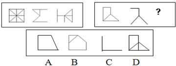 图形推理试题主要考查应考者抽象推理的能力。要求考生从四个备选答案中选择最符合规律的一个,替代题干中的问号,使图形呈现出一定的规律性。试题包括多种类型,仅举其中一种类型为例。