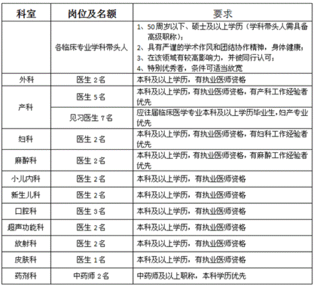太原市太航医院是集医疗、预防、教学、科研为一体面向全社会的二级甲等综合医院,是省、市、区新农合、省职工、省生育、市职工、市居民、市离干、市工伤医保定点医院,是太原市首批爱婴医院,也是山西医科大学和长治医学院的教学基地。我院现设39个科室,医院现有员工650余人,其中 91exam .org高中级职称的医疗卫生技术人员100多人,能开展二级综合医院要求的各类医疗技术项目。由于我院目前已成立太原市太航医院北院,医院经营规模扩大,因工作需要,现面向社会公开招聘下列人员:(见附件)