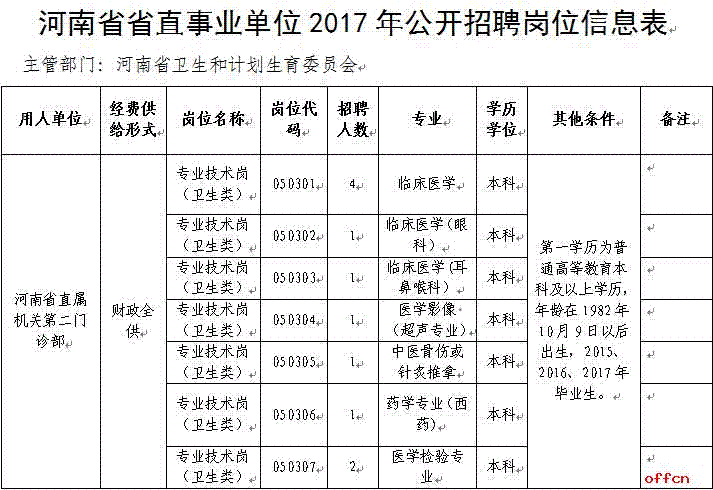 具体招聘岗位、招聘人数和招聘岗位条件等详见《河南省直属事业单位2017年公开招聘岗位信息表》。