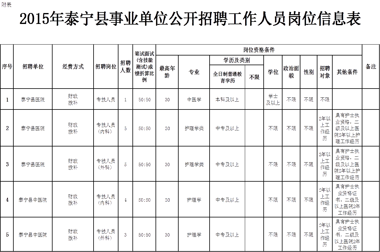 原标题:泰宁县卫生局 泰宁县公务员局关于2015年泰宁县卫生系统事业单位公开招聘工作人员的通告