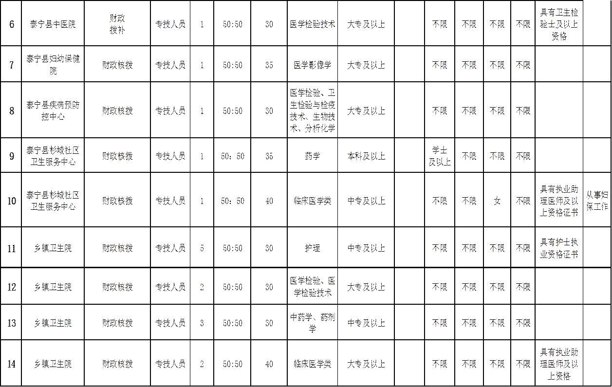 的临床医学(中医学)、护理学(助产士)、检验、药剂学等岗位,采取统一报名,按考生考试总成绩从低到高依次按岗位聘用到龙安、大龙、梅口、龙湖、上青、新桥、开善、下渠、大田、朱口等单位,由县卫生局统一调配。