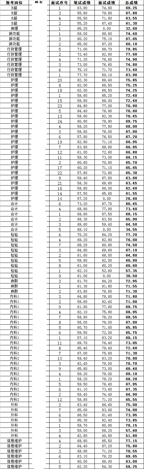 山东省胸科医院2016年省属事业单位公开招聘初级岗位工作人员面试已结束,现将总成绩公示(见下表),请查阅,如有疑问,请致电0531-86568012/86568042。