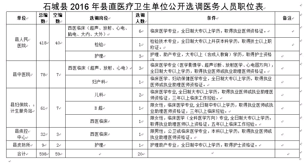 原标题:石城县2016年县直医疗卫生单位公开选调医务人员工作实施方案