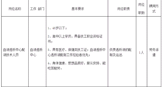 原标题:肾脏内科血透中心招聘启事
