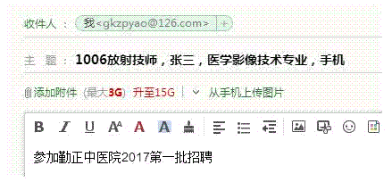 在本公告附件中下载《广州市勤正中医院2017第二批公开招聘人员报名表(报考岗位+考生姓名+所学专业)》填写,在报名时间内以附件形式发送至邮箱gkzphu@126.com报名