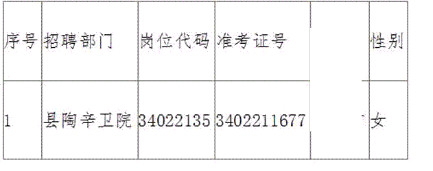 2016年芜湖县部分事业单位招聘工作人员(第二次)考试,县陶辛卫生院(岗位代码34022135)的考生(准考证号3402211677)符合考察资格,根据《公告》规定,按照综合成绩(笔试66分;面试73.80分,合成成绩68.34分)经体检、考察合格,拟对聘用人员进行公示。(见附件)