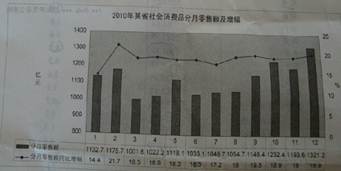 116.以下说法正确的是: A.2010年该省社会消费品分月零售额增幅最大的是12月份 B.2009年该省社会消费品分月零售额最大的是12月份 C.2010年该省限额以上企业零售额大于限额以下企业零售额 D.该省2009年5月社会消费零售额为941.5亿元 117.已知2010年该省限额以下批发和零售企业零售额相比于2009年年同期增幅为18.7%,那么2009年该省限额以下批发和零售企业零售额均为: A.5720亿元 B.4563亿元 C.772亿元 D.351亿元 118.已知2010年限额以上企业零售额增幅为27.4%,限额以下企业零售额增幅为12.8%,那么2009年限额以上企业和限额以下企业零售额差值比2010年差值相比是: A.约多386亿元 B.约少386亿元 C.约少674亿元 D.约少647亿元 119.该省2010年社会消费品零售总额是: A.13482.4亿元 B.11959.6亿元 C.14852.6亿元 D.16347.2亿元 120.以下说法错误的是: A.2010年3月的零售额在12个月中是最小的 B.2010年1月的零售额增幅在12个月中是最小的 C.2010年批发零售业零售额占社会消费品零售总额的比重超过50% D.2010年限额以上企业零售额占社会消费品零售总额的比重超过50%