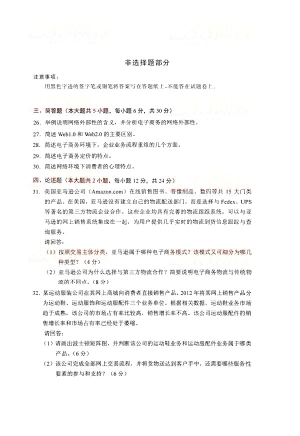 全国2014年10月自学考试《电子商务概论》真题(打印word版)(四)
