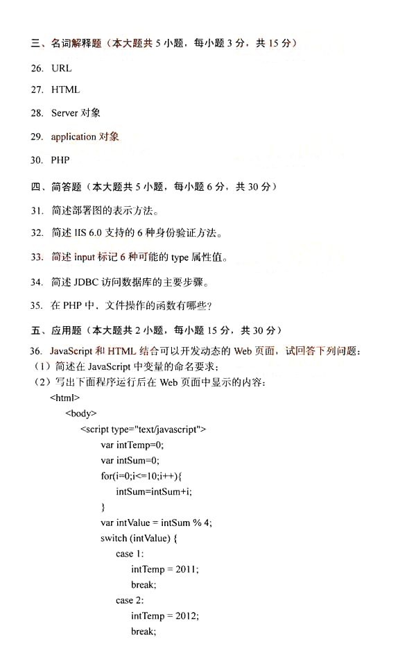 全国2014年10月自学考试《互联网软件应用与开发》真题(完美word版)(四)