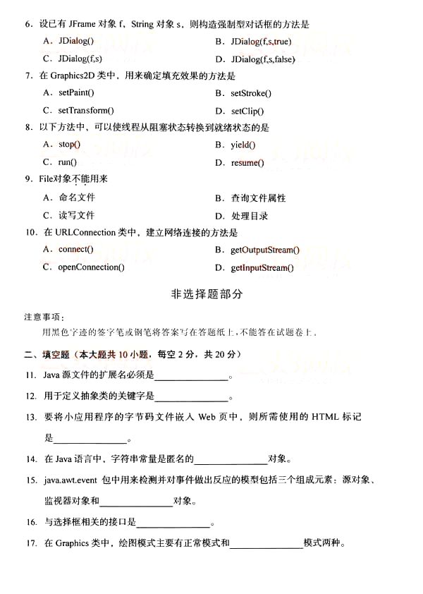 全国2014年10月自学考试《JAVA语言程序设计(一)》真题(word下载版)(二)