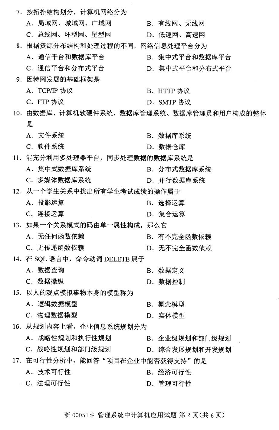 全国2014年10月高等自学考试管理系统中计算机应用真题(word下载版)(二)