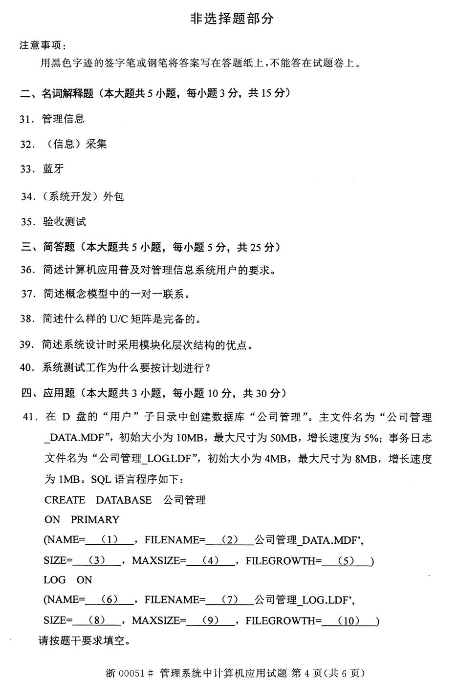 全国2014年10月高等自学考试管理系统中计算机应用真题(word下载版)(四)
