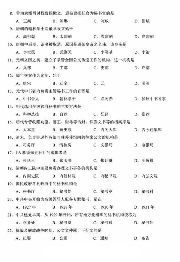 全国2014年10月高等教育自学考试中国秘书史真题(完美word版)(二)
