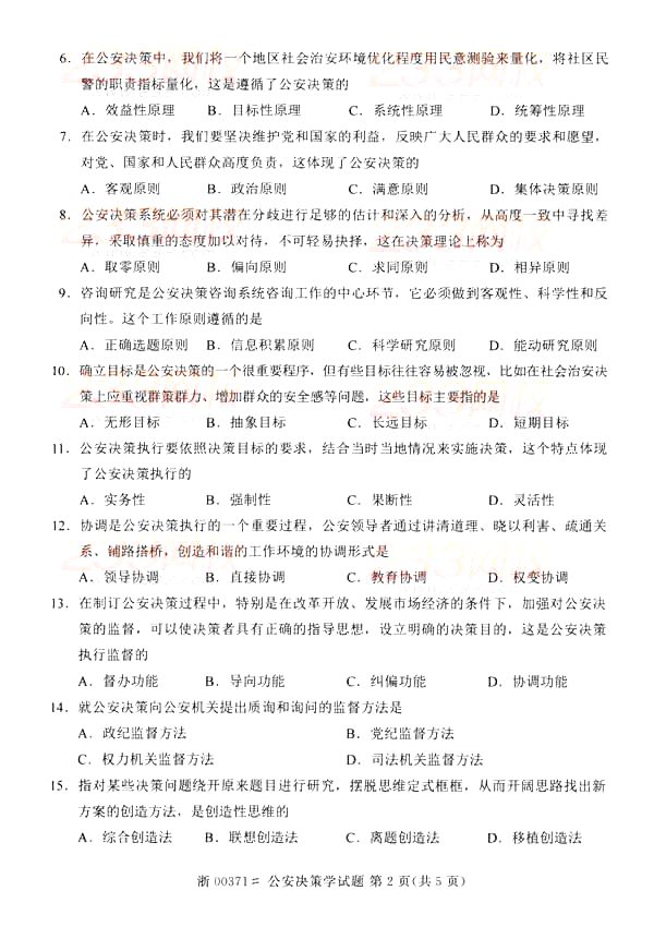 全国2014年10月自学考试《公安决策学》真题(打印word版)(二)