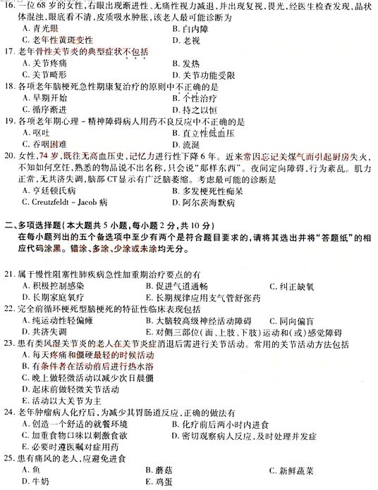 全国2014年10月自学考试《老年护理学》真题(清晰word版)(三)