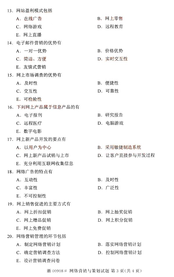 全国2014年10月自学考试《网络营销与策划》真题(完整word版)(三)