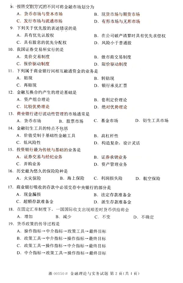 全国2014年10月自学考试《金融理论与实务》真题(精美word版)(二)