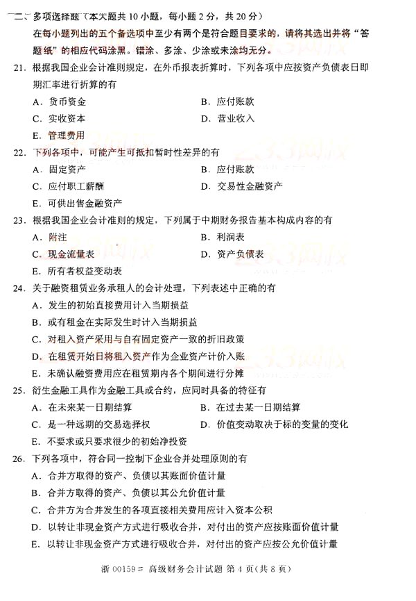 全国2014年10月自学考试《高级财务会计》真题(word下载版)(四)