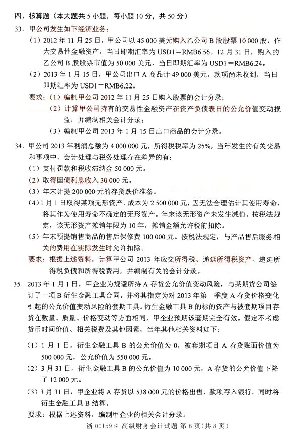 全国2014年10月自学考试《高级财务会计》真题(word下载版)(六)