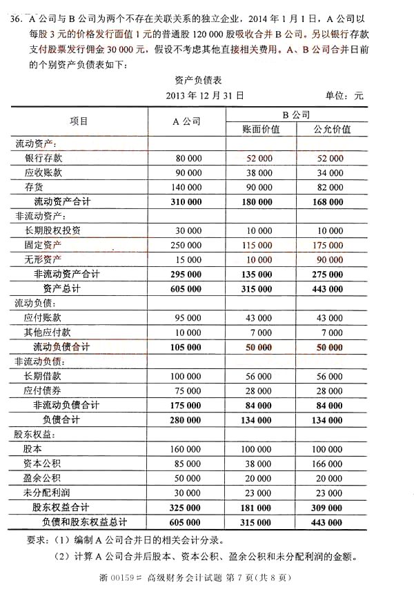 全国2014年10月自学考试《高级财务会计》真题(word下载版)(七)