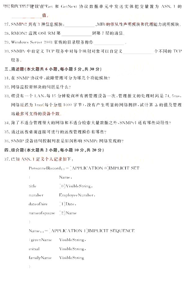 全国2014年10月自学考试《计算机网络管理》真题(清晰word版)(四)