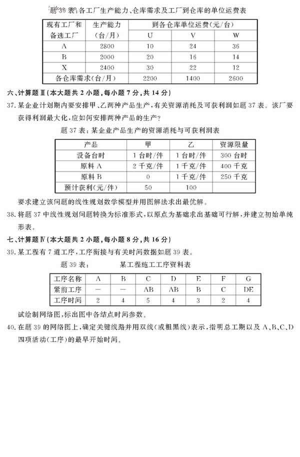 全国2014年10月自学考试《运筹学基础》真题(word下载版)(五)