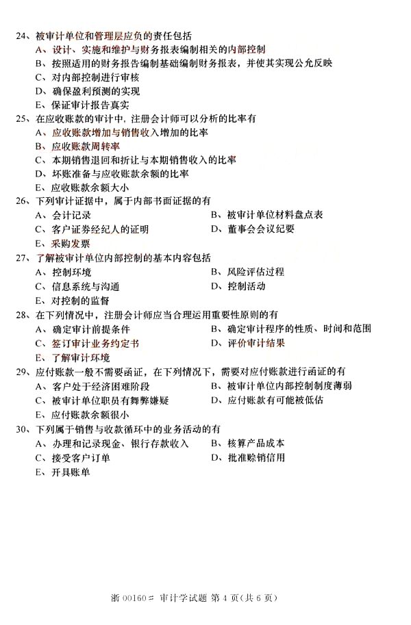 全国2014年10月自学考试《审计学》真题(word下载版)(四)