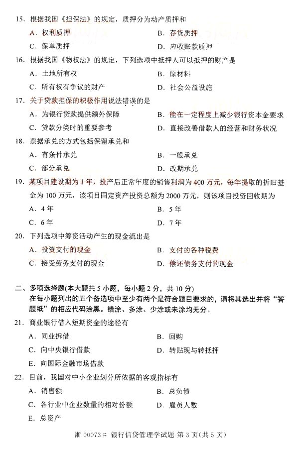 全国2014年10月自学考试《银行信贷管理学》真题(清晰word版)(三)